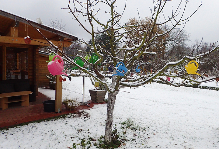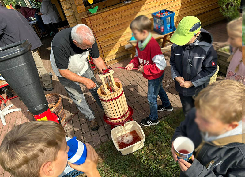 Der Umwelt- und Lehrgarten ist zur Besichtigung geöffnet, bei Kaffee und Kuchen. Ausserdem ist uns nach der neuen, ganzjährlich gültigen Freigabe der Gemeinde auch der Ausschank alkoholischer Getränke erlaubt. Es gibt jedenfalls Wasser, Apfelschorle, Radler, alkoholfreies Bier, Seppelschen . . .