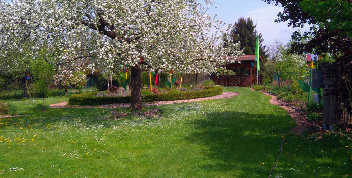 Über 40 Apfelbäume und Beerensträucher liefern eine feine Obstvielfalt. Und da wir den Anspruch haben, ein Umweltgarten zu sein, hat Wildobst wie Kornelkirsche, Mispel, Felsenbirne, Holunder oder Weißdorn bei uns einen festen Platz. Die Vögel danken es uns. Für sie haben wir an fast jedem Baum einen Nistkasten angebracht. Sie sind es auch, die dafür sorgen, dass im Garten das biologische Gleichgewicht gewahrt bleibt.